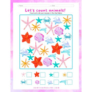 Dive into an ocean adventure with Auntie Angeline's Counting Ocean Animals Worksheet, adorned with delightful artwork by yours truly! Each page showcases a captivating array of underwater creatures, ready to assist young learners in mastering counting from 1 to 10. From playful dolphins to majestic sea turtles, every marine marvel makes learning an exciting voyage. Join Auntie Angeline and her aquatic companions as you count your way through the depths of the ocean, turning learning into an engaging and enjoyable exploration!